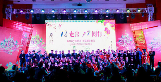 1月15日下午两点,新合新生物医药与利华制药共同举办的“16走来17同行”2016年终表彰会在长沙顺利举行,来自湖南新合新生物医药总部及津市基地、湖南成大、湖南诺凯、北京科益丰、北京法莫斯达及河南利华的中高层人员、2016优秀员工共计260余人参加了此次年度盛会。