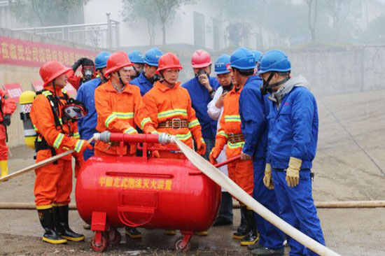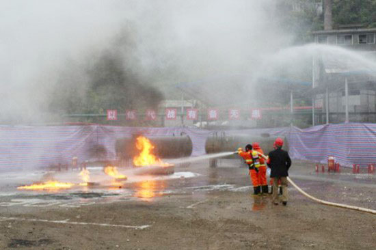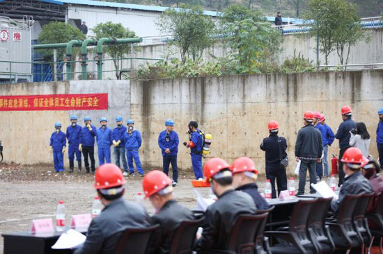 参加这次演练的有成大应急救援队,202车间,办公室人员等共计100余人。其中,应急救援队32人,前后准备了一个多月时间,进行了四次预演练,在气势、精准、技能等方面下足了功夫。现场演练全程2.5小时,出动了120救护车、泡沫灭火车等救援设施,使用了不同类型的灭火器、消防水枪、正压呼吸器衣、可燃气体检测仪、有毒气体检测仪等先进救援设备。