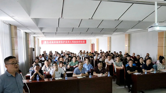 为充分认识企业商业秘密保护的重要性,布局企业商业秘密保护的管理体系,进一步提高各公司管理水平和管理人员履职能力,增强企业用工法律风险的防范意识,帮助企业依法规范劳动关系,提高规范办理劳动用工手续的能力;2020年6月5日下午,新合新津市基地综合管理部精心组织了一场主题为”公司商业秘密保护与用工风险防控”的专题培训,特邀请新合新法律顾问汪辉律师进行授课。新合新津市基地、龙腾基地及科益新公司高管、部门负责人、技术人员、财务人员、业务骨干等共计100余人聆听讲座。