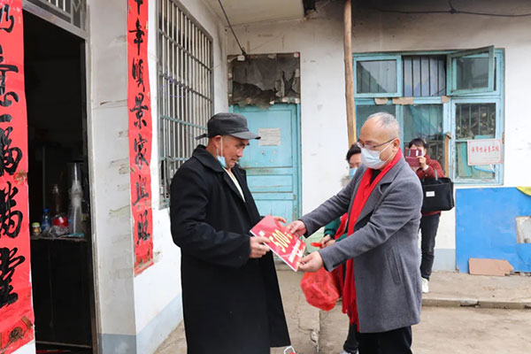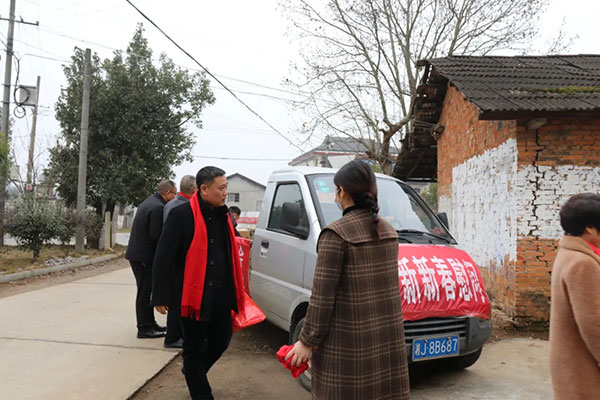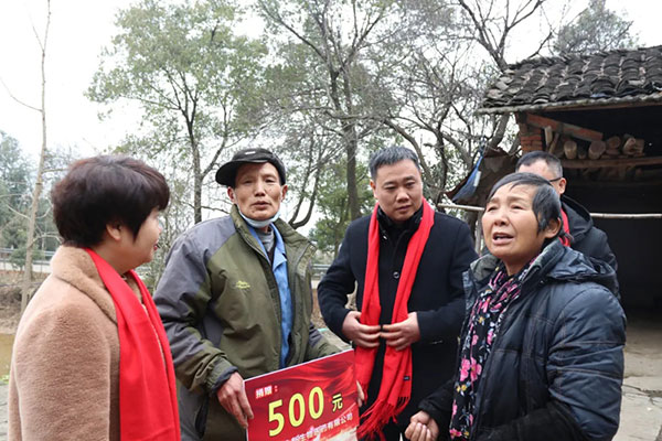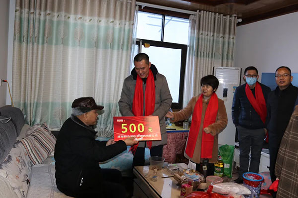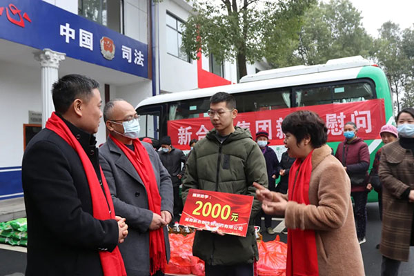 在座谈会结束后,集团总经理冯战胜率新合新津市基地全体高管又马不停蹄的前往新州镇开展“迎新春.送温暖”慰问活动。慰问小组一行人对新州镇24户贫困家庭进行了集中慰问,详细询问了他们的生活现状、急需期盼解决的问题。并送上节日慰问金及礼品,希望他们能过上一个温暖美满的春节。对困难大学生王建军同学进行了座谈慰问,鼓励他好好学习、奋勇拼搏、积极面对生活并送上了慰问金及礼品。