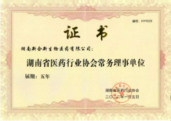 经过民主选举,大会产生了第五届理事、监事,推选出会长、执行会长等协会新一届领导班子。新合新集团董事长刘喜荣当选为湖南省医药行业协会第五届理事会常务理事。同时,湖南新合新生物医药有限公司也在此次会上被授予协会常务理事单位的荣誉。