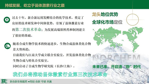 过去十年,新合新运用发酵结合的化学技术,奠定了良好的技术研发和中间体优势,引领了甾体激素行业的第二次技术革命,随着合成生物学技术的快速进步,我们必将推动甾体激素行业第三次技术革命!