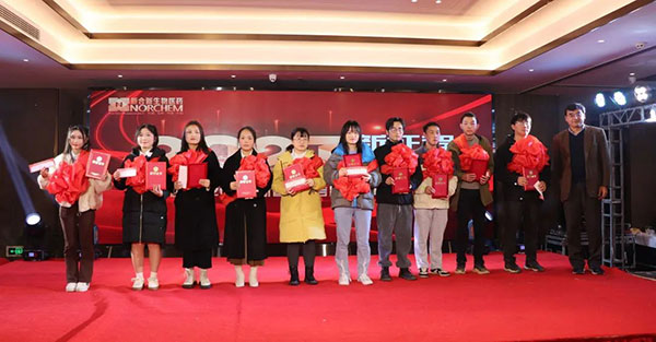 随后,综合管理中心总经理刘喜华先生做集团产业布局及发展规划介绍,并宣读评优表彰文件。他表示,新合新集团经过10年的打造,目前已发展成为国内甾体药物领域最大的生产企业之一;截止12月底,新合新集团与醇健制药共有员工1576人。新合新集团共有10家分子公司,醇健制药共有3家分子公司,集团规模不断发展壮大。