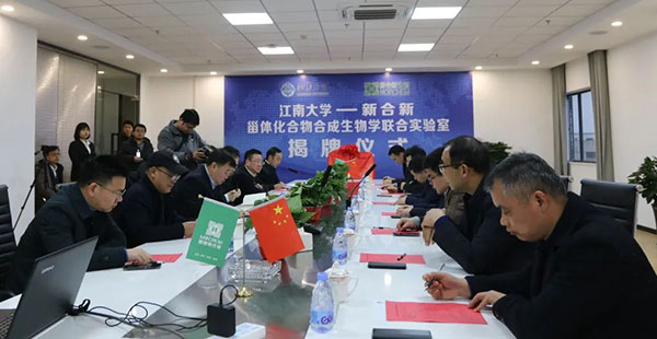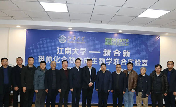 2023年2月10日,新合新与江南大学在湖南津市新合新甾体生物医药产业园签署合作协议,宣布《江南大学-新合新合成生物学联合实验室》正式揭牌成立,仪式由津市市政府副市长曾令军同志主持。出席揭牌仪式的有中国工程院院士、江南大学教授、江南大学学术委员会主任陈坚,中国工程院院士、湖南省农业科学院院长、柑橘资源综合利用国家地方联合工程实验室主任单杨,江南大学教授、博士生导师、未来食品科学中心副主任周景文,津市市委副书记、市长彭子晟,津市市政协主席李景峰、湖南新合新生物医药有限公司董事长刘喜荣,共同为“江南大学—新合新合成生物学联合实验室”揭牌。江南大学院士专家组、津市市委多位重要领导、新合新集团研发项目组,一起见证揭牌仪式隆重举行,并表示衷心的祝贺。
