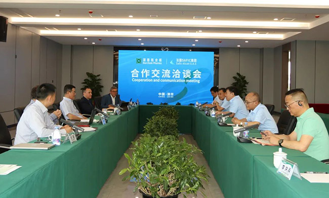 法国SAFIC集团代表Gaël Garnaud先生详细介绍了公司的有关情况,SAFIC集团成立于1847年,总部位于法国巴黎,其全球分公司、分支机构及销售网络覆盖欧洲、美洲、亚洲、非洲等地区,服务超过60个国家的客户,协助中国医药化工产品生产厂家打入海外市场、抢占市场占有率的成功销售经验超过30年。新合新作为中国激素类产品及其他生物合成类产品龙头企业之一,Gaël Garnaud对我司取得的成就给予了肯定。为了更好的开拓国际市场,发挥双方优势,SAFIC集团将与新合新共同开发欧洲(含土耳其)、美洲、北非及埃及市场。