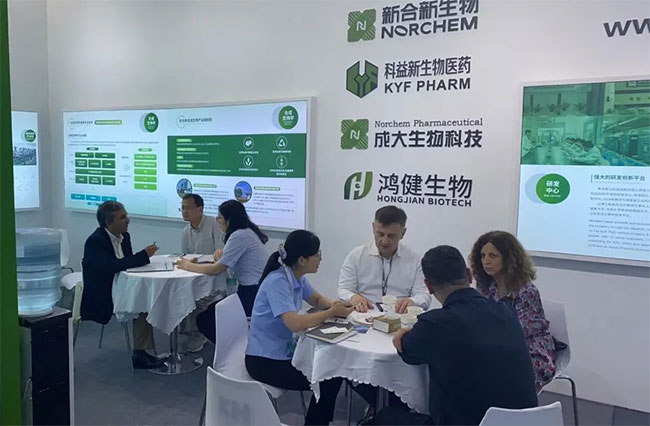 在为期三天的展会中,新合新生物携旗下分子公司精心筹备,展示了倍他米松、地塞米松、左炔诺孕酮、去氧孕烯、地屈孕酮等多款具有市场竞争力的原料药及其中间体产品,同时也展示了一系列全新的合成生物学产品。董事长刘喜荣带领的营销团队与各位合作伙伴、行业专家和企业家之间热烈沟通、交流,与新老客户共商合作、共谋发展!